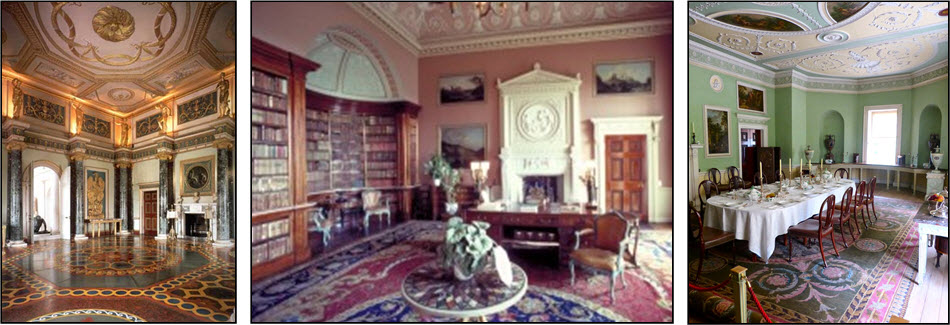 xxxxxShown here (left to right) are the Ante Room in Sion House, London, the Library in Harewood House, Yorkshire, and the Dining Room in Saltram House, Devon.