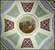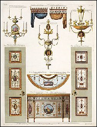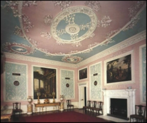 xxxxxOn his return to London in 1758, he soon established a thriving business. He was appointed joint architect to the king in 1762, and he was joined by his younger brother James the following year. With his assistance (and with occasional help from his brothers John and William) he built a number of fine houses in London and outside - such as No. 20 Portman Square (now the Courtauld Institute of Art), and Mersham-le-Hatch in Kent. However, the majority of his work involved remodelling existing stately homes on neo-classical or “Georgian” lines, like Osterley Park and Syon House just outside the capital, Harewood House in Yorkshire, Kedleston Hall in Derbyshire, and Saltram House, near Plymouth, in Devon. In these works he modified the somewhat heavy Palladian style, providing a greater feeling of spaciousness, and using more imagination and freedom in the choice of decoration. Shown here is an example of the interior decoration at Osterley Park House in Hounslow, a western suburb of London.