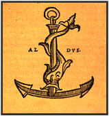 xxxxxIncidentally, the trademark of the Aldine Press, shown here, depicted a dolphin and an anchor. It represented the Aldine motto Festina lente (Make haste slowly).
