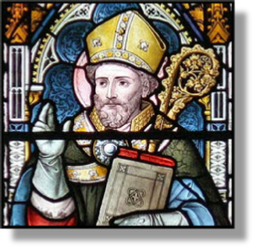 Anselm: stained glass window in the Church of Our Lady and the English Martyrs, Cambridge, England. Seal: that of Anselm of Canterbury, contained in The Historical Memorials of Canterbury by the English churchman Arthur Penrhyn Stanley (1815-