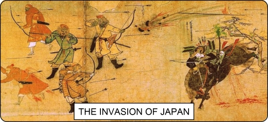 xxxxxIn 1274 he sent a fleet to invade Japan but it was defeated and turned back in Hakata Bay. While returning to the Korean mainland a violent storm arose and the fleet was almost totally destroyed. Then a second attempt at invasion, made in 1281, also ended in disaster. It reached Hakata Bay, but was then driven back by a typhoon, or, as the Japanese were pleased to regard it, a kamikaze or divine wind!