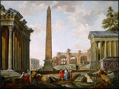 Du Bellay: 1868, artist unknown. Ancient Rome: a caprice by the Italian artist Giovanni Paolo Pannini (1691-