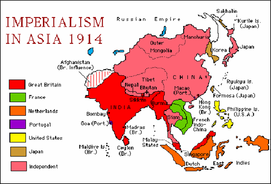 (1819), Burma (1824), Hong Kong (1841), India (1858), Bhutan