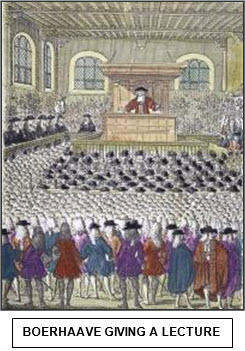 xxxxxThe Dutch physician and chemist Hermann Boerhaave spent much of his working life at Leiden. He made a special study of smallpox and the sweat glands, and was one of the first to discover that certain diseases were spread by contact. But he is remembered above all for his method of clinical teaching whereby he taught his students at the bedside of his patients. As a result, Leiden became recognised as a centre of medical excellence. His two major treatises were his Medical Principles of 1708 and his Aphorisms on the Diagnosis and Cure of Diseases a year later, and he also helped in editing the works of the physicians Vesalius and Harvey. As a chemist he wrote a textbook, Elements of Chemistry, in 1724.
