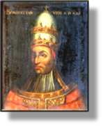 xxxxxIncidentally, a large number of statutes were erected in his honour, either by Boniface himself or by others, and several have survived. It would seem that whilst he failed to enhance the actual power and prestige of the Pope during his pontificate, he did manage to increase its future stature. Looking at the surviving statues, it is evident that the height of the papal tiara was notably extended and the number of crowns around the tiara was increased from one to two.