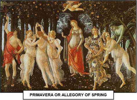 xxxxxBy the age of 25 he was an established painter in the Florence of his day, working for the city's leading families, first amongst whom were the Medicis. He was court painter to Lorenzo the Magnificent, and his Adoration of the Magi, for example, a brilliant work in its own right, was clearly painted as a tribute to the Medicis (here illustrated). It included portraits of family members in the guise of the wise men! Axyoung member of this family, Lorenzo di Pierfrancesco, was a particularly generous patron, and it appears that it was for him that Botticelli painted two of his most famous allegories, his Primavera (Allegory of Spring) in 1478, and his Birth of Venus of 1485. Regarded by many as capturing the very essence and spirit of the Renaissance, these two elegant and sensitive works combine the beauty of legend with a pagan delight in the human form.