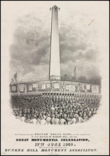 xxxxx...... Today, an obelisk known as the Bunker Hill Monument stands on Breed's Hill to commemorate the battle. This is somewhat confusing and entitles you to ask: Why is the battle called Bunker Hill when it was actually fought on Breed's Hill? Simply because the Americans originally intended to occupy Bunker Hill, but the ground troops appear to have taken over Breed's Hill by mistake. Nevertheless, in true military fashion, the name given to the battle plan was retained! Illustrated here is the inauguration of the monument in 1843.