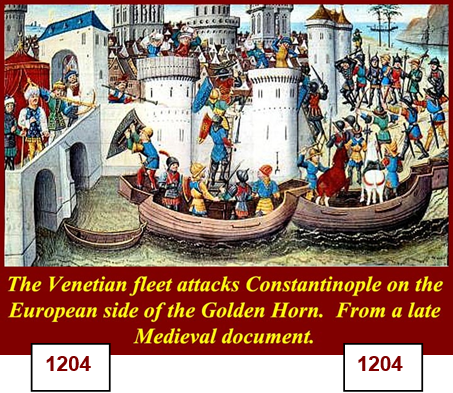 xxxxxThe Byzantine Empire, founded in 330, became the bulwark of Christian defence following the fall of the Roman Empire in 476, but by 1071 it was threatened on all sides by the Seljuk Turks, the Normans, and the Pechenegs from eastern Europe. The arrival of the Crusaders gave some security, but the Fourth Crusade in 1202 (JO) turned upon Byzantium itself and brought it down. Under an ineffectual Latin Rule, the victors divided up the empire between them and continued their plundering. In 1261, however, Michael VIII, the Greek emperor of Nicaea, managed to retake Constantinople and, bringing an end to Latin Rule, attempted with some success to re-