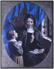 xxxxxAngela Merici was born in Desenzano in the Republic of Venice in about 1472. After joining the Third Order of St. Francis, she returned to her home town in about 1492 and organised a group of young women to teach the catechism to the children of the village. In 1506, whilst at prayer, she had a vision and from then on dedicated herself to the founding of a society of virgins at Brescia. The aim of the society was to restore or strengthen family life by teaching young girls the Christian faith. She drew up the rules of the movement in 1536 and was elected the order’s superior the following year. She died in 1540 and was canonised (made a saint) in May 1807.