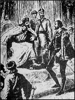 xxxxxFrom here he set out on the overland journey to Moscow, a distance of some 1,500 miles. He was well received by the Tsar, Ivan IV, (illustrated) and returned with a letter granting the English favourable trade conditions with Russia. The result of this meeting was the setting up of the Muscovy Company, established in 1555 (M1), and granted the monopoly of Anglo-Russian trade. Following his successful visit, Chancellor again travelled to Moscow as part of a trade mission, but on the return journey he was drowned in a shipwreck off the coast of Scotland in November 1556.