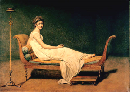 xxxxxAnd it was during this period that, as an accomplished portrait artist, he produced one of his finest works, Madame de Récamier, a young Paris beauty (here illustrated). The work was never fully completed due, we are told to a dispute over the colour of her hair. It was naturally black, but it appears that David painted it brown to accord with his general colour scheme! This and his other portraits - which included one of the French chemist Antoine Lavoisier and his wife - are considered by many to be amongst his best work. It must be said however, that his neo-classical paintings did tend to be statuesque and stilted at times, lacking the emotional content needed to breathe life into the figures.