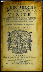 xxxxxMalebranche published a number of works on theology, metaphysics and ethics, and, as a scientist, he also made contributions to the study of optics, the nature of light and colour, and the laws of motion. In his major work, The Search for Truth, written in 1674 and 1675, Malebranche covered a wide variety of topics, concentrating mainly upon the principal sources of human error and the means of avoiding these errors in order to find the truth. And contained therein is his famous doctrine of the Vision in God, the theory that ideas that function in human knowledge and perception can only exist, in fact, in the divine intellect. We know and perceive