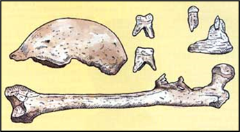xxxxxIn 1892 the Dutch anatomist and geologist Eugène Dubois, searching for the “missing link” between ape and man in the evolutionary scale, discovered a skullcap, femur and some teeth while working on the island of Java in the East Indies. He claimed that this “Java Man” was in fact the missing link and, having published his findings in 1894, returned home the following year to conduct a lecture tour across Western Europe. Scientists who supported the evolutionary theory applauded his work, but many questioned his interpretation. Doubt was cast as to whether the skullcap and femur came from the same individual, some thought the skull was from a giant gibbon, whilst others considered that the creature was an early human. Such was the controversy this aroused that in 1900 Dubois hid the fossils away and did not show them again until the early 1930s. He continued to insist that the Java man was the missing link -