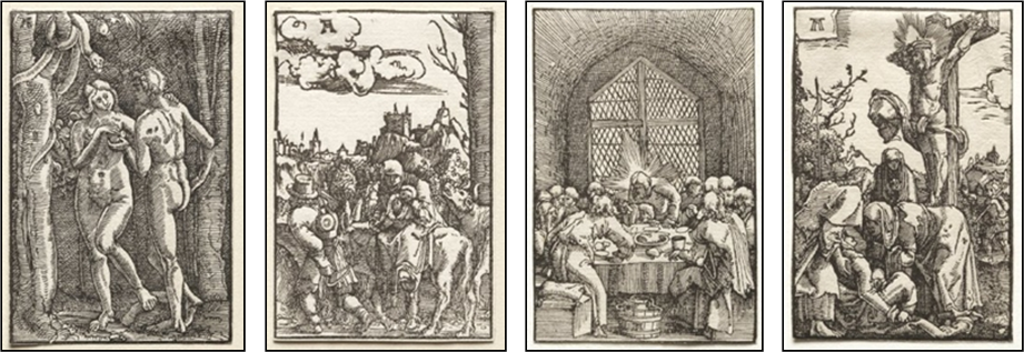 xxxxxShown here are four engravings from his The Fall and Redemption of Man: The Garden of Eden, The Flight into Egypt, The Last Supper, and The Crucifixion.