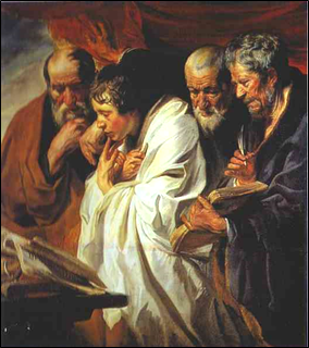 xxxxxAmong his major works are his early painting The Four Evangelists (illustrated above), his Triumph of Bacchus, and his Christ Driving the Money Changers from the Temple -