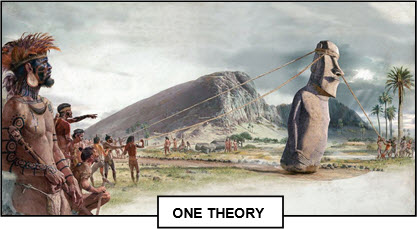 Statues: photograph by Arian Zwegers, 2011. Painting: by the English painter William Hodges (1744-1797), 1775 – National Maritime Museum, Greenwich, London. Statue: photograph by Arian Zwegers, 2011. Inhabitants: illustration for A Voyage Round the World: In the Years 1785-1788 by the French naval officer Jean François Galaup de La Pérouse. (Originally a pencil drawing from nature by the French artist Gaspard Duché de Vancy, 1786) – The Library at the Mariners’ Museum, Newport News, Virginia, USA. Theory: by the Spanish illustrator Fernando G. Baptista – National Geographic, Washington.