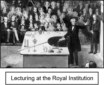 xxxxxFaraday was born in Newington, Surrey, the son of a blacksmith. He had very little formal education, and at the age of fourteen began work as an apprentice to a London bookseller and binder. Over the next seven years he read widely, and became particularly interested in the current books and articles on science. He began experimenting with electricity in his spare time, and at the age of twenty he attended a number of lectures given by Humphry Davy. Afterwards, he sent the notes he had made to this eminent English scientist, and these clearly made an impression. In 1812 he was appointed Davy’s secretary and, later, his laboratory assistant at the Royal Institution. Such was his contribution to the scientific work being carried out there, that he was elected to the Royal Society in 1824, and became the director of the Institution’s laboratory the following year. Then in 1833 when Davy retired, he succeeded him as professor of chemistry. For much of his career, from 1825 to 1862 in fact, he gained a reputation for the popular lectures he gave at the Institution. These included his “Friday evening discourses”, attended on one occasion by Prince Albert and two of his sons. He died at his home near Hampton Court in Surrey, and was buried in Highgate Cemetery in north London.