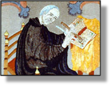 Geoffrey of Monmouth: detail from the Geoffrey Tapestry at Monmouth Priory, Gwent, Wales.