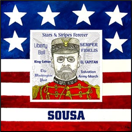 xxxxxToday, however, Sousa is remembered above all as an outstanding bandmaster. He composed no less than 136 marches, and their lively, rousing tunes earned him the title “The March King”. Among the best known marches are Semper Fidelis, The Washington Post, The Liberty Bell, Stars and Stripes for Ever, and Hands Across the Sea. He wrote music, he said “for the feet instead of the head”, and he certainly succeeded in his aim.