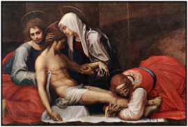 xxxxxLike Sandro Botticelli, (1478 E4), the Florentine artist Fra Bartolommeo was seriously affected by the preaching and execution of Savonarola. In 1500 he destroyed all his drawings and paintings of the nude figure and joined the Dominican Order. Confining his work to religious subjects, his style was influenced by Raphael and Michelangelo, and he began to use the richer colours of the Venetian school. Among his finest paintings were two deeply moving works, his Madonna of Mercy and his Pietà.