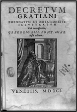 xxxxxGratian was a Benedictine monk. Little is recorded about his life, but it is known that he was teaching at the Monastery of the Saints Felix and Nabor at Bologna when he completed his major work, probably about the year 1143. Entitled the Concordia discordantium canonum it was a vast and remarkable collection of canon law -