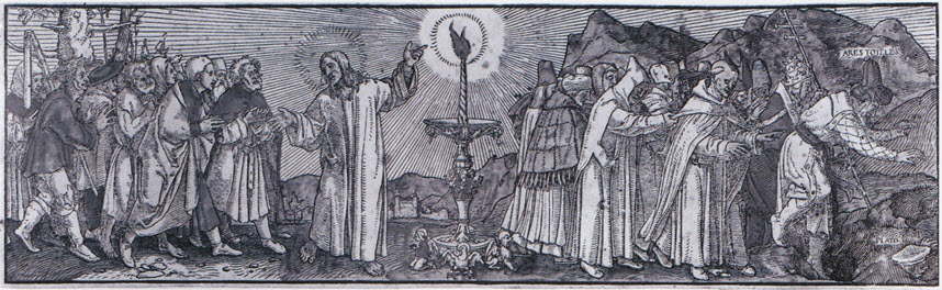 xxxxxThe German painter Hans Holbein was a talented book illustrator, designer and woodcut artist as well as a portrait painter of exceptional ability. For example, he provided pen and ink sketches for In Praise of Folly, the work of the Dutch humanist Erasmus, and he produced a brilliant series of wood-
