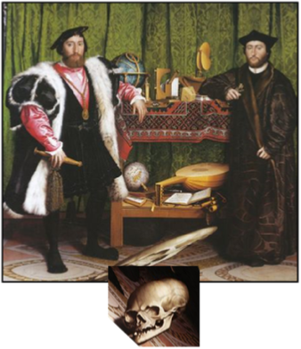 xxxxxIncidentally, Holbein’s famous work The French Ambassadors, mentioned above, has puzzled viewers ever since it was painted in 1533. It shows two well-