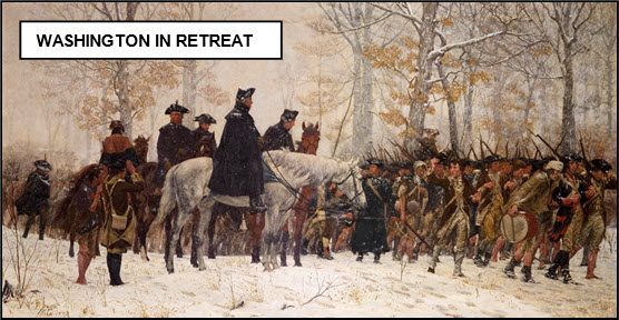 opened on a highly successful note. Having seized the Dorchester Heights overlooking Boston, he had cannon brought south from Fort Ticonderoga, and in March 1776 forced the British to evacuate the city. But soon after this impressive capture of Boston, the Declaration of Independence, made in July 1776, proved somewhat premature. Washington moved his army to New York, but was severely defeated by a large British force at the battle of Long Island in the August of 1776. He was then forced out of Manhattan, trounced at Chatterton Hill, White Plains, and chased across New Jersey into the state of Pennsylvania. With numbers depleted by desertion, shortage of supplies, and the enemy at his heels, Washington's chances of survival appeared slim.