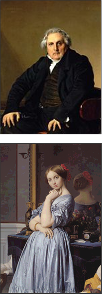 xxxxxSettled comfortably in Paris, it was in 1827 that he received one of his first major commissions, The Apotheosis of Homer, a beautiful painting for a ceiling in the Louvre. This truly marked him out as the champion of Classicism. Two years later he was appointed professor at the École des Beaux Arts, but criticism of his next work, the Martyrdom of St. Symphorian, prompted him to leave Paris. He returned to Rome in 1834 where he became director of the French Academy there, a post he held with distinction for seven years. One of his major works during that period was his Antiochus and Stratonice, a scene from the classical world which has not been surpassed for its detailed accuracy. Notable, too, was his brilliant portrait of Monsieur Bertin. Painted in 1832, and now in the Louvre, Paris, it is considered by many to be one of the finest portraits of the century (illustrated).