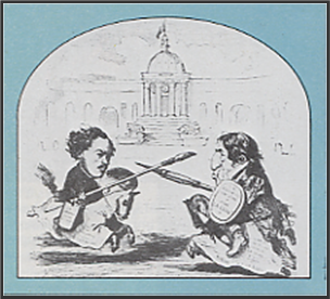 xxxxx…… His “battle” against Romanticism is illustrated here by way of a cartoon. On the right Ingres wields a fine pen in his fight for the “line”, whilst Delacroix supports “colour”, armed with a broad brush. ……