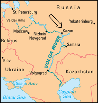 Ivan IV: 18th century, artist unknown – State Historical Museum, Moscow. Map (Volga): licensed under Creative Commons – https://resourcesforhistoryteachers.wikispaces.com. Kazan: by the Russian graphic artist Boris Chorikov (1802-