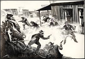 xxxxxAndx1881 saw the famous Gunfight at the O.K. Corral in Tombstone, Arizona, a 30 second burst of fire that has gone down in history as the classic shootout of the Old West. It occurred in the October when the city marshal Virgil Earp (1843-
