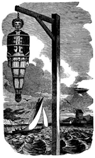 Kidd: date and artist unknown. Hanging: drawing from The Pirates Own Book by the American writer Charles Ellms (1805-