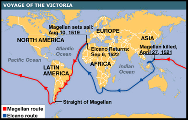 xxxxxThe Spanish navigator Juan Sebastián Elcano, assumed command following the death of Ferdinand Magellan in 1521, and became the first man to take an expedition around the globe. But the price was high. Of the five ships that left Spain in 1519, only the Victoria made it back, and with just 17 of the original crew of 270. Financially, however, it was a success, opened up a vital new trade route to the Far East, and gained the Philippines for the Spanish crown. And it proved at last that the world was round!