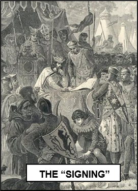 The “Signing”: illustration from Cassell’s History of England, Century Edition, c1902, artist unknown.