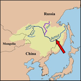 xxxxOn the face of it, the settlement favoured the Chinese. The border was drawn along the River Gorbitsa, a tributary of the Amur, and the Stanovoy Range, thus leaving the Amur valley and Manchuria (homeland of the dynasty) within the Chinese empire. Furthermore, the Russians were obliged to remove their forts from the Amur River basin (arrowed), and their access to the Sea of Okhotsk - and the Far Eastern markets beyond - was severely restricted. On the other hand, Russia received Transbaikalia (the region to the south and east of Lake Baikal), and was granted passage to Peking for its trade caravans. In addition, there were factors of greater significance. Firstly, China had negotiated with Russia on equal terms, thus recognising her neighbour as having equal political status. Secondly, by having its border with China clearly defined, the possibility of future conflict had been much reduced, together with Russia's likely defeat! Thirdly, prevented from further advance along the Amur River, Russia now concentrated its efforts on developing its territory towards the Pacific Ocean, reached earlier in the century. This agreement, qualified somewhat by the Treaty of Kyakhta in 1727, remained basically intact until the middle of the 19th century.