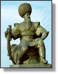 Alp Arslan: statue in Ashgabat, Turkmenistan, sculptor unknown. Map: licensed under Creative Commons -