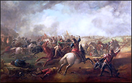 xxxxxFollowing the indecisive Battle of Edgehill in 1642, the Royalists held the upper hand. They set up their headquarters at Oxford and even launched an attack upon London, but this had to be abandoned when the Parliamentarians made a deal with the Scottish Covenanters and put northern England in jeopardy. The Royalists responded by making peace with the Irish rebels and going on the offensive. In 1644, led by Prince Rupert, they attacked the Roundheads, then besieging York, and drove them on to Marston Moor. Here, however, they were counter-attacked by the parliamentary cavalry, supported on one wing by the “Ironsides”, a disciplined force under the inspiring leadership of Oliver Cromwell. The king’s central front was virtually destroyed and the Royalists fled the battle, Rupert only just managing to escape. They made a quick recovery but, as we shall see, in the next major encounter, the Battle of Naseby in 1645, Parliament’s New Model Army, raised in the meantime, was to have a decisive effect.
