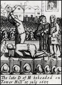 xxxxxIncidentally, the executioner who beheaded the Duke of Monmouth was an Englishman (or possibly an Irishman) called Jack (John) Ketch (died 1686). He was renowned for his appalling lack of skill. It is said, for example, that it took three blows to behead Lord Russell - following the Rye House Plot of 1683 - and that he wielded at least five strokes of the axe before decapitating Monmouth! So well-known did he become, that for more than two centuries after his death his name was used as a common nickname for an executioner.