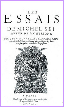 xxxxxThe French writer Michel de Montaigne is best known for his essays, a form of writing which he virtually created himself. Four volumes were published in all, the first two in 1580, the third in 1588, and the last after his death in 1595. These short pieces -
