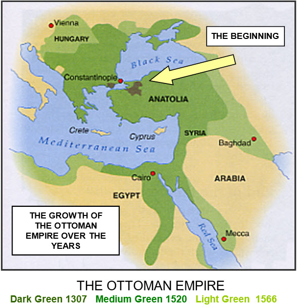 xxxxxAs we shall see (1345 E3), from these modest conquests was to arise a mighty empire which, over the next two hundred and fifty years, was to sweep through the whole of Asia Minor, overrun the Balkans, dominate the whole of the eastern Mediterranean, conquer the coastal regions of North Africa, and stretch into Persia, Iraq and the fringes of Russia and Europe. In the process it was to make quite an impact upon world history!