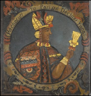 xxxxxIt was around the year 1466 that Pachacuti Inca (illustrated) and his son joined forces in a powerful attack against the Chimu Kingdom in the north, the strongest and most advanced of their neighbours. The difficult terrain made an outright invasion impracticable, but they eventually attacked the kingdom on a number of fronts, along the coast and from the highlands inland. It is believed, too, that the Incas destroyed the irrigation system upon which the Chimu Indians depended and that this contributed to the kingdom's downfall. The territory was rapidly overrun and, following a brief but bitter battle, the capital city of Chan Chan was taken and sacked. Once in control, however, the Incas were able to absorb much of Chimu culture and to make ready use of the road and irrigation systems which served the territory.