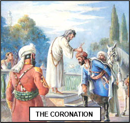 Map (India): licensed under Creative Commons – en.wikipedia.org. Coronation: detail, by the Afghan artist Ustad Abdul Ghafoor Breshna (1907-