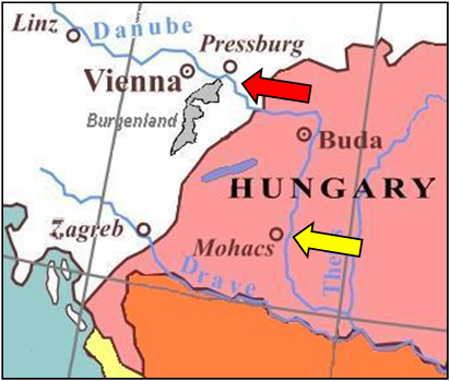 xxxxxFirmly established in the Balkans, the Turks, led by their great leader Suleyman, routed the Hungarians at the Battle of Mohacs in 1526 (arrowed on map), killing the Hungarian king, Louis II. Three years later he laid siege to Vienna (arrowed on map), where the city was defended by the emperor’s brother, Archduke Ferdinand of Austria, there to claim the vacant Hungarian throne. Fortunately for Europe, the stout resistance given by the garrison, combined with bad weather, the outbreak of disease and the threat of uprisings in Persia, caused the Sultan to lift the siege.