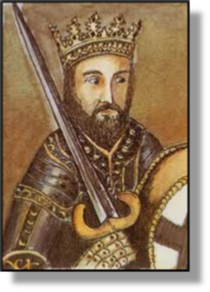 xxxxxInx1139, after a long campaign which ended in a victory at the Battle of Ourique, he secured the independence of Portugal from the province of León and promptly assumed the title of King. Establishing his capital at Coimbra (arrowed), he then set about the task of extending his kingdom southwards. In 1147 he captured the town of Santarém and then, with the aid of a 12,000 strong army of crusaders which was passing through on its way to Palestine, he laid siege to Lisbon. After seventeen weeks the Muslim inhabitants surrendered to the Christian forces and were allowed to leave the city. In addition to a substantial payment, the Crusaders -