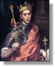 xxxxxHenry reluctantly agreed to these provisions, but he renounced them in 1261 - following a dispute between the barons themselves - and also sought outside support. The provisions were annulled by papal bulls (edicts) in 1261 and 1262, and then early in 1264 Louis IX of France (illustrated), acting as an arbitrator, roundly condemned them in his ruling known as the Mise of Amiens. As we shall see, it was this last judgement, in fact, which triggered off The Barons’ War, led by Simon de Montfort, and was to bring about the defeat and capture of the King and his son Edward at the Battle of Lewes in 1264. The Provisions were finally annulled by the Dictum of Kenilworth in October 1266. By this time, however, Henry was monarch in name only; his more able son Edward had become the power behind the throne.