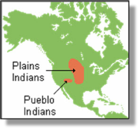 Map (North America): licensed under Creative Commons - https://historyfacebook.wikispaces.com. Dwellings: published by Southwest Arts and Crafts, Santa Fe – Tichner Brothers’ Collection, Print Department, Boston Public Library.
