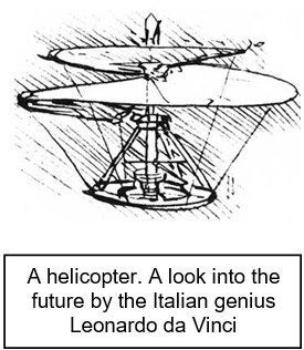 The Birth of Venus: by the Florentine Renaissance painter Sandro Botticelli (c1445-1510), 1486 – Uffizi Gallery, Florence. Helicopter: pen and ink drawing by the Italian Renaissance painter Leonardo da Vinci (1452-1519), c1488 – Library of the Institute of France, Paris. Collage: learning.hccs.edu