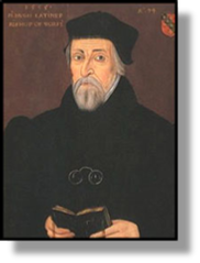 xxxxxAlongside him and suffering the same sentence of death was Hugh Latimer (illustrated above on left). A Protestant from his days at Cambridge University, he actively supported Henry VIII in his attempts to obtain a divorce from Catherine of Aragon. He was appointed bishop of Worcester in 1535, but resigned from this office in protest against Henry's Six Articles. He was restored to royal favour with the accession of Edward VI, but he was accused of heresy once Mary Tudor became Queen and, after imprisonment in the Tower of London, was burned at the stake. We are told that his last words were: ”We shall this day light such a candle … in England as shall never be put out”.