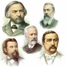 c. He and his fellowxmusicians were (clockwise from left) Balakirev, Rimsky-Korsakov, Borodin, and Mussorgsky, with (centre) César Cui, an army officer who composed and worked as a music critic in his spare time. They acquired their name in 1867 following the first performance of Rimsky-Korsakov’s Fantasy on Serbian Themes. Onxhearing the work, the Russian music critic Vladimir Stasov (1824-1906) announced that Russia now had its own “mighty little heap” of native composers. The idea caught on and the group took its place in music history under a variety of titles, including The Mighty Five, The Russian Five and The Mighty Handful.